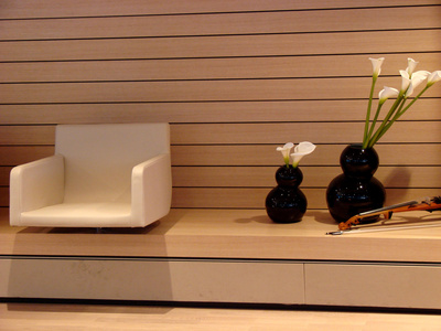 Helle Farbtöne, helles Holz machen den Raum optisch höher. Dunkle Decken lassen die Decke niedriger erscheinen.